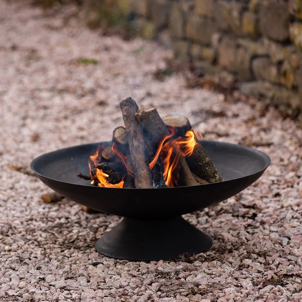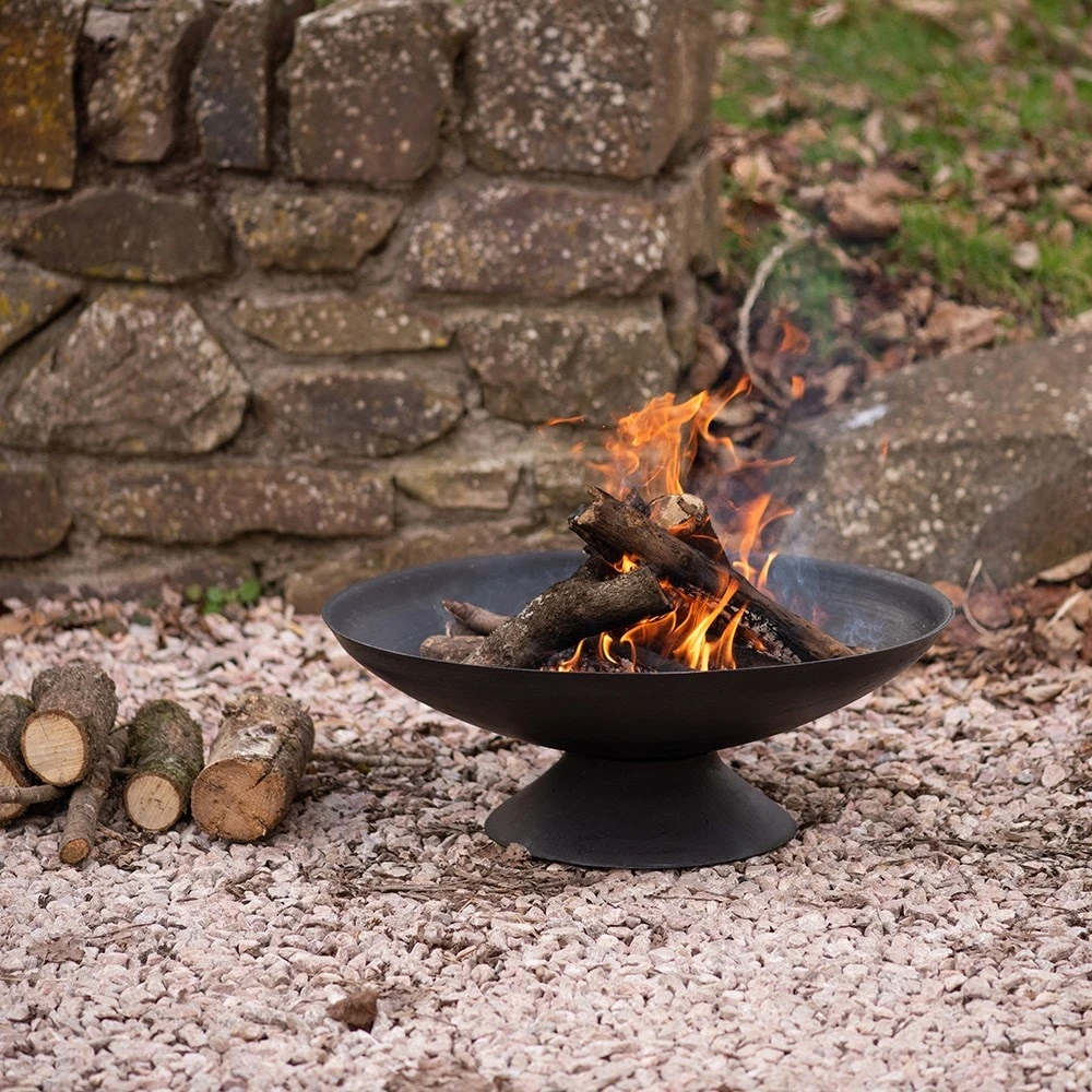 For outdoor use only. Keep children and pets away from the brazier when lit. Always position away from buildings on a safe non-flammable surface. If using on a paved patio, place on an additional protective paving stone made from solid natural stone or concrete at least 5cm thick. This will avoid possible discolouration and cracking of your patio, as some mock slabs made from resin or ceramic may be susceptible to heat damage. Only for use with logs or charcoal.