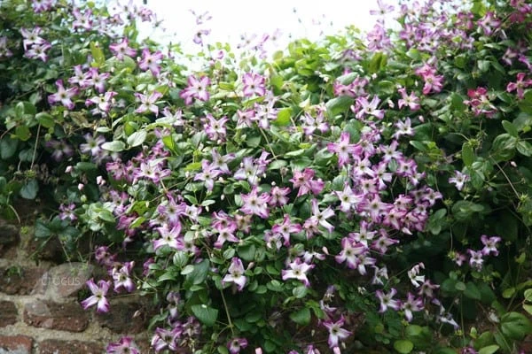 Open bell-shaped, white flowers, each with purple-pink veining that becomes more pronounced around the outer edges, are seen from midsummer to late autumn. Ideal for covering a pergola or arch, it also does well in large pots or containers filled with John Innes No.2 compost as long as it is kept well fed and watered.